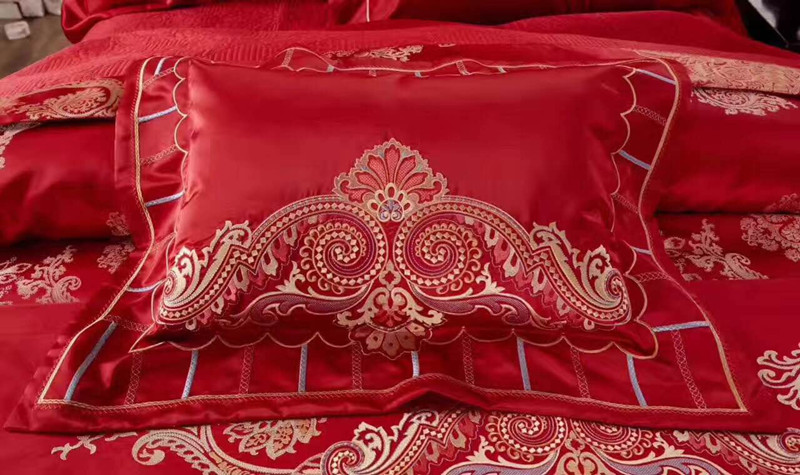 品名:天賜良緣 此款面料是織錦緞中的臻萃典范,經向緯向的色線絢麗,色彩斑斕,色澤光亮,手感和視覺的沖擊力度很大,浪漫的歐式卷草紋和唯美的佩茲利圖案搖曳生姿,美輪美奐,舞蹈出瑰麗的華爾茲!此款床品猶如重金打造的鉆石一般,高端、奢華、華麗!適合婚慶、居家、喬遷、饋贈的至高選擇!